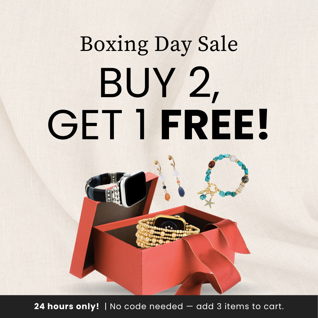 Boxing Day is het perfecte moment om je favorieten te vernieuwen, nieuwe stijlen te combineren of eindelijk de stukken te bemachtigen waar je al een tijd naar kijkt. Onze handgemaakte Apple Watch-bandjes zijn ontworpen om je dagelijkse look te verbeteren — van rustige ochtenden tot avondjes uit — en om lang na het seizoen bij je te blijven. Voor slechts 24 uur, geniet van onze Boxing Day-aanbieding: