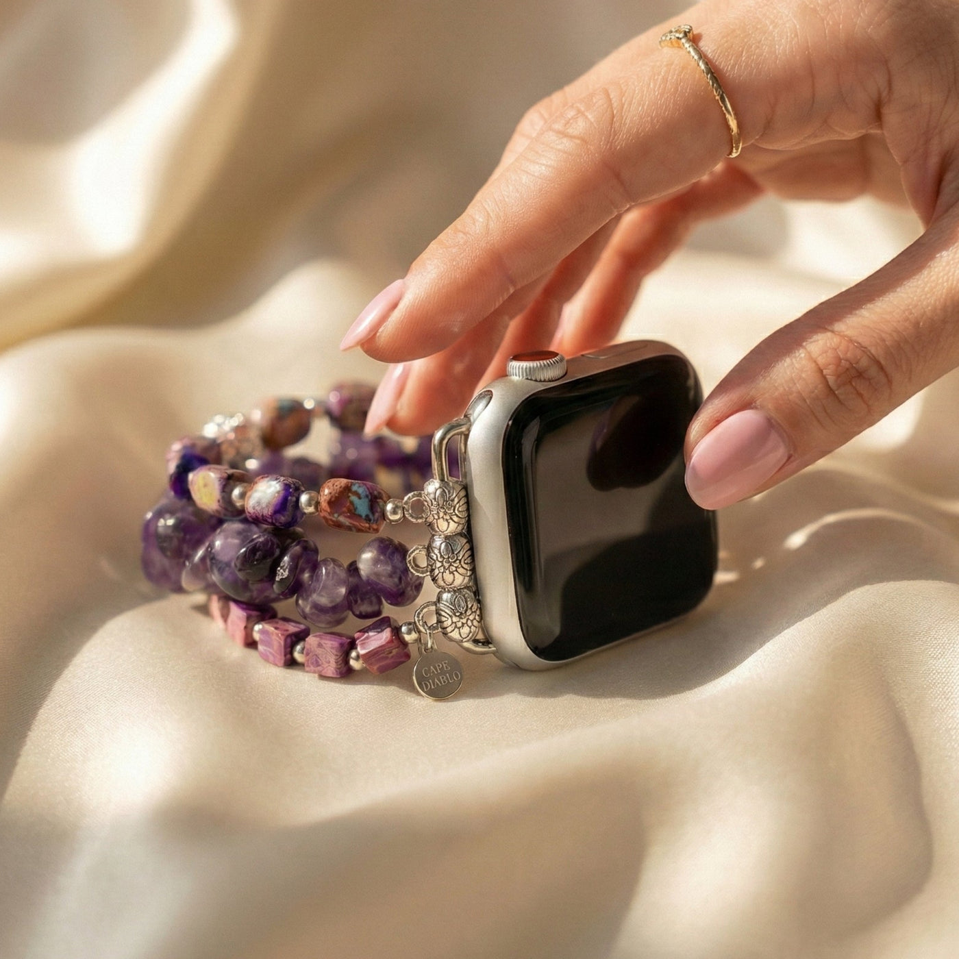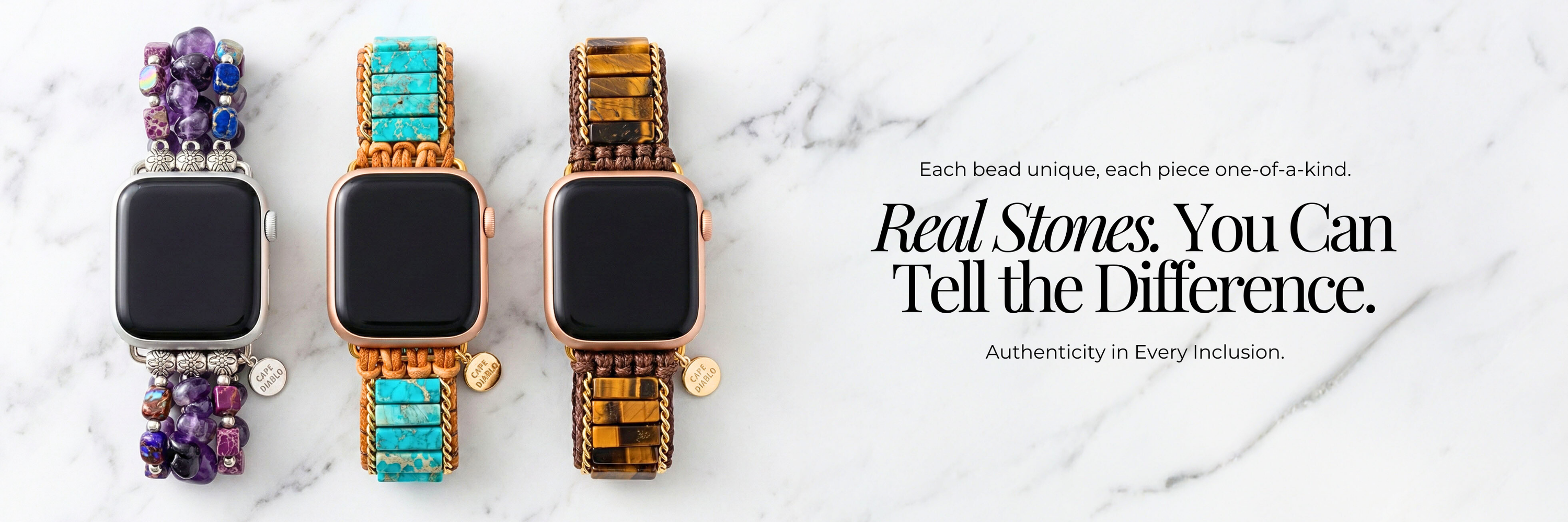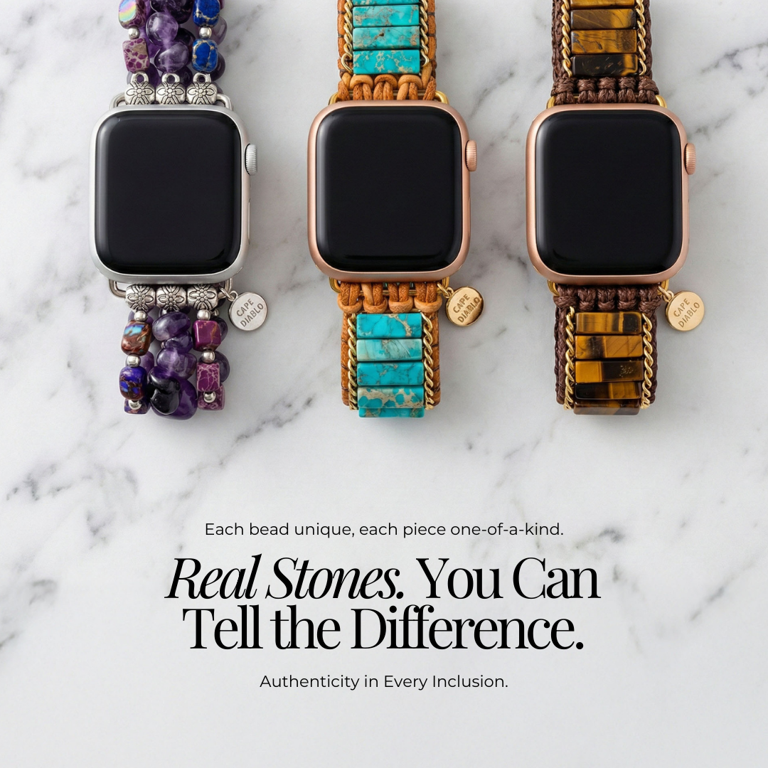 Onze bandjes zijn gemaakt van echte natuurlijke stenen — elke kraal toont zijn eigen karakter, diepte en variatie. Geen overdreven gepolijste perfectie. Geen uniforme snelkoppelingen.