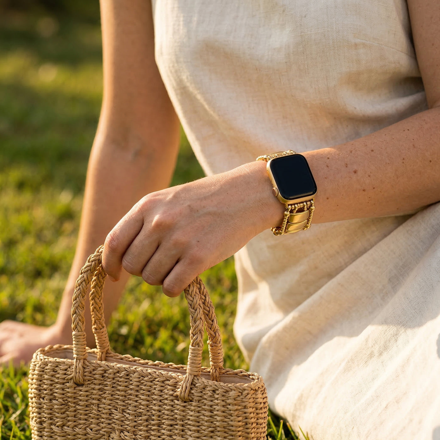 Vier het seizoen van vernieuwing met een frisse energie om je pols. Onze Nieuwste Gold Noir Stretch Apple Watch-band is geïnspireerd op het ontwaken van de natuur — een symbool van groei, schoonheid en nieuwe beginnen.